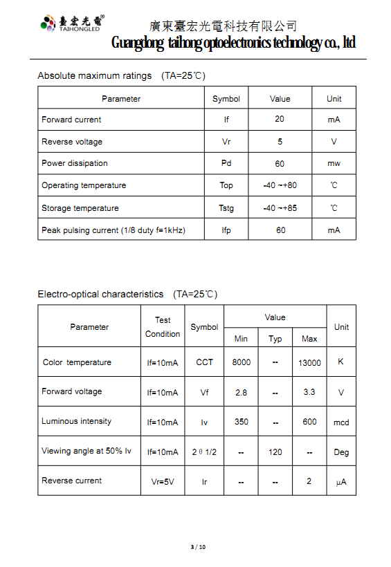 更多的0805单色,双色,三色以及侧发系列灯珠规格书,样品测试请咨询台宏客服工程师微信 2881795059
