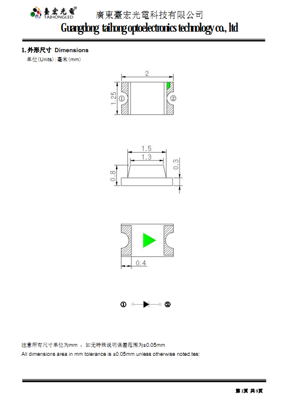 封装尺寸:2.0*1.2*0.8