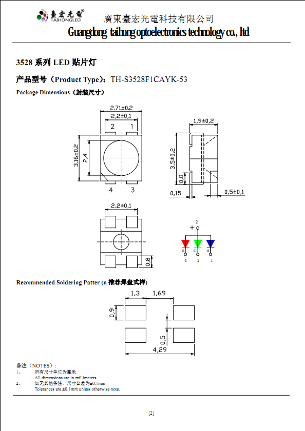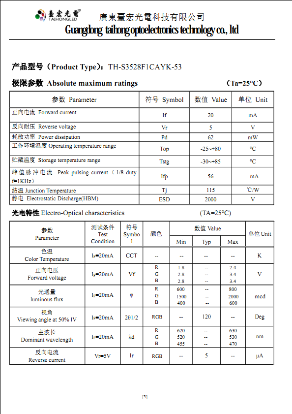 更多的3528单色,双色,三色以及侧发系列灯珠规格书,样品测试请咨询台宏客服工程师微信 2881795059