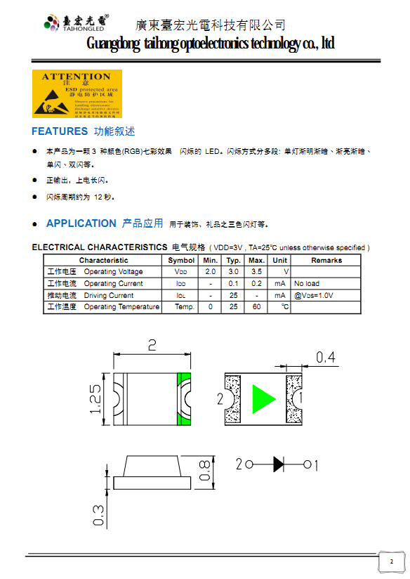 规格型号:台宏TH-S0805F3K1YJ-53 (0805RGB快闪)